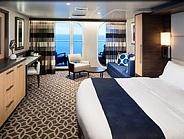 Каюта с виртуальным балконом, почти от пола до потолка, предоставляют в реальном времени вид на океан и направления движения. Максимальная вместимость: 4 человека.